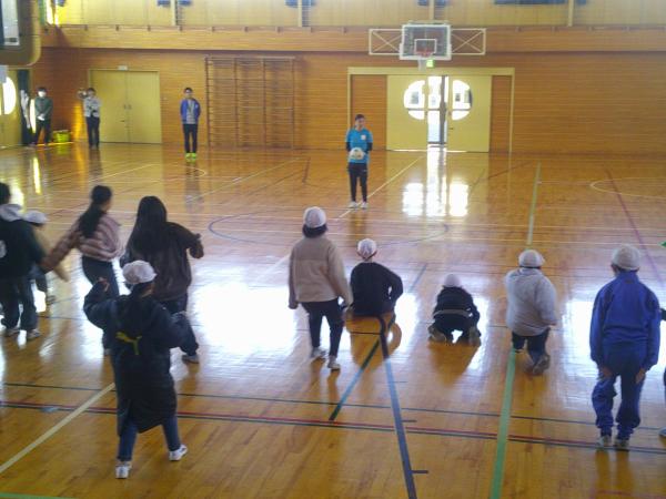 前半は、子どもたちと体育館で様々なゲームを体験しながら、お互いのことを知る時間です。子どもたちは、とっても楽しそうな表情で元気いっぱいに活動できました。