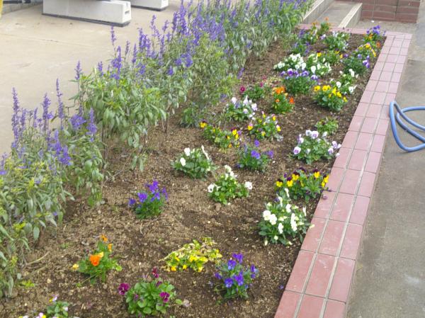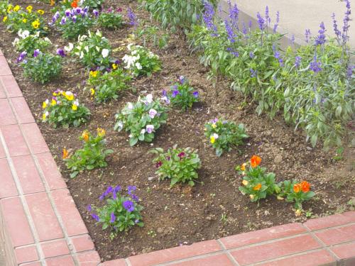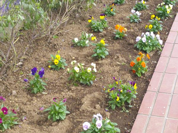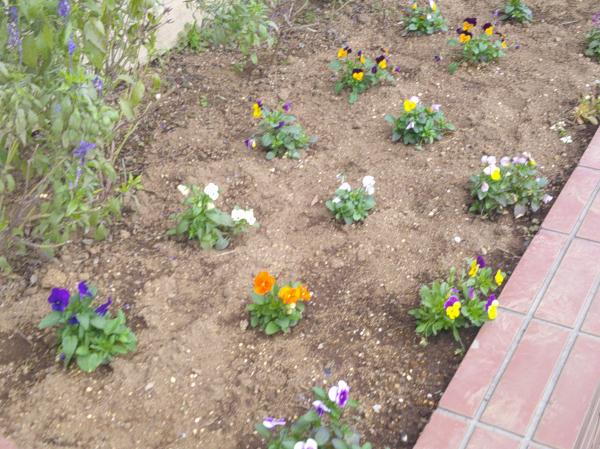 今日は午後から雨でした・・・・。 ビオラは冬の寒さにも耐えることができる丈夫な花です!! まだ花は小さいですが、これからどんどん大きくなっていくでしょう!! 春にはきれいな花がたくさん咲きます。その日を楽しみに・・・・・・。