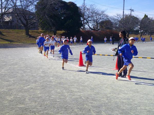 4年生の持久走記録会の様子です! 絶好の持久走日和で、子どもたちは元気よくグランドを走り抜けていきました! 大きく描かれたグランドを4周することはとっても大変です!息を切らせながら、腕を振って頑張って走る子がたくさんいて、とっても素晴らしかったです!(^▽^)/ 多くの子が自己記録を更新できたようで、満足の笑顔がいっぱいありました。 冬は体力が落ちて、風邪をひきやすくなる時期です。この持久走記録会で終わりにするのでなく、継続して取り組んでもらえたらうれしいです!(⌒∇⌒)