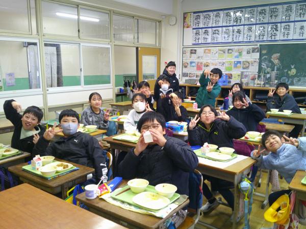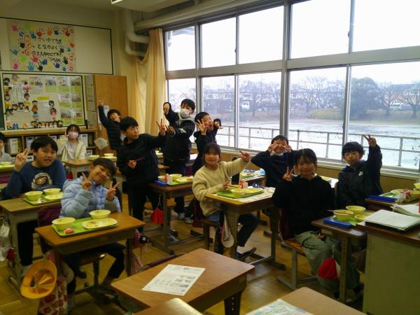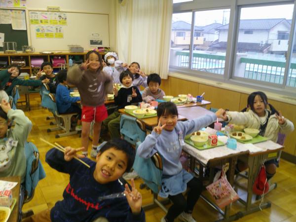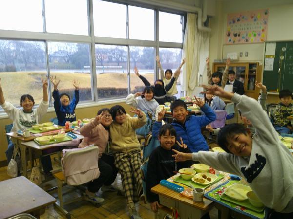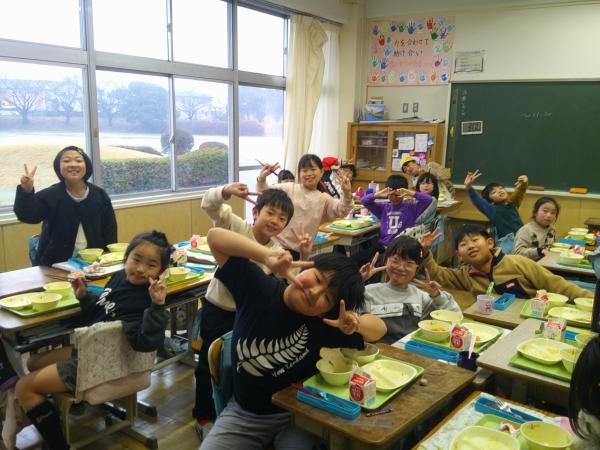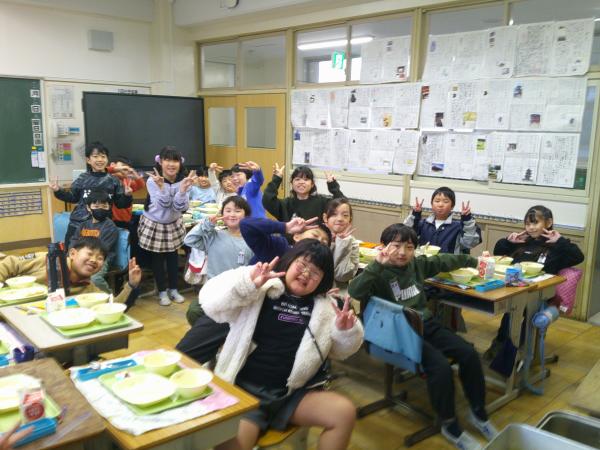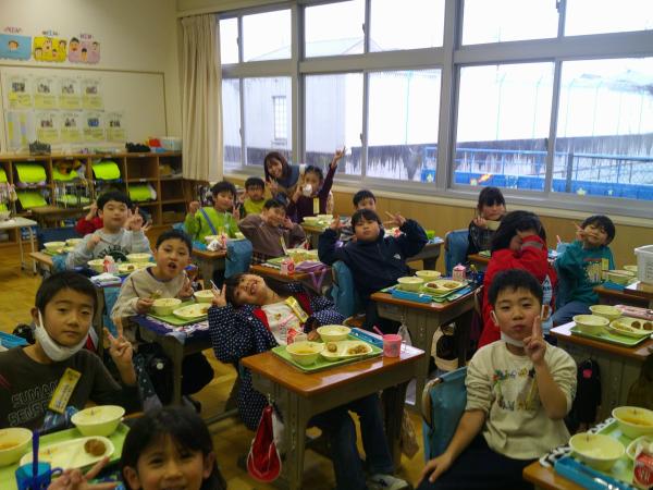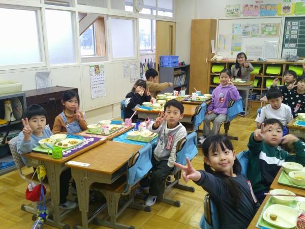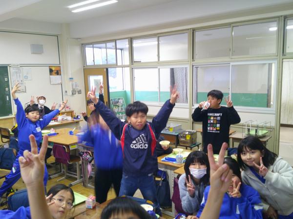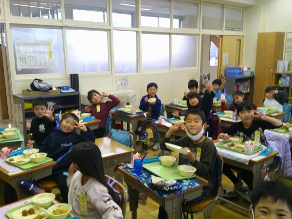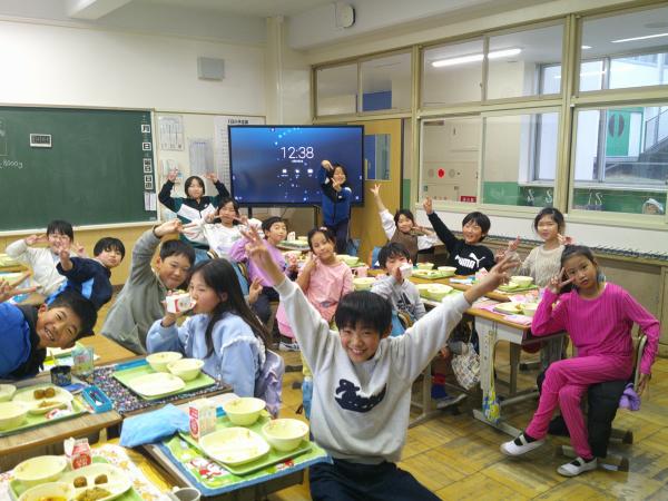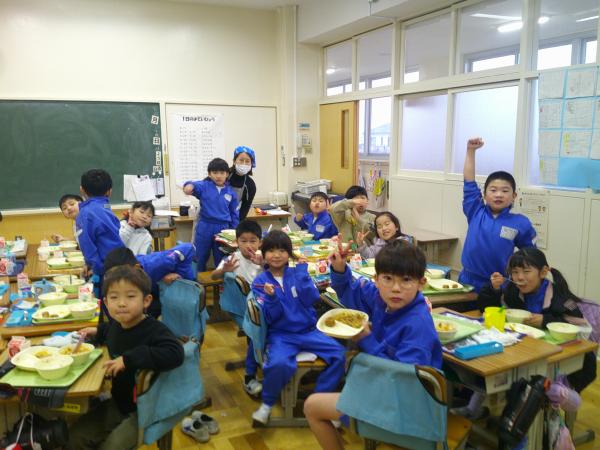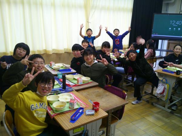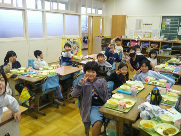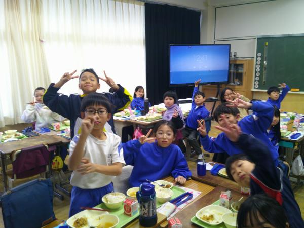給食の時間はみんなの笑顔がいっぱい溢れており、元気いっぱいの小絹っ子の笑顔があふれていました!