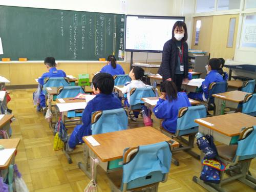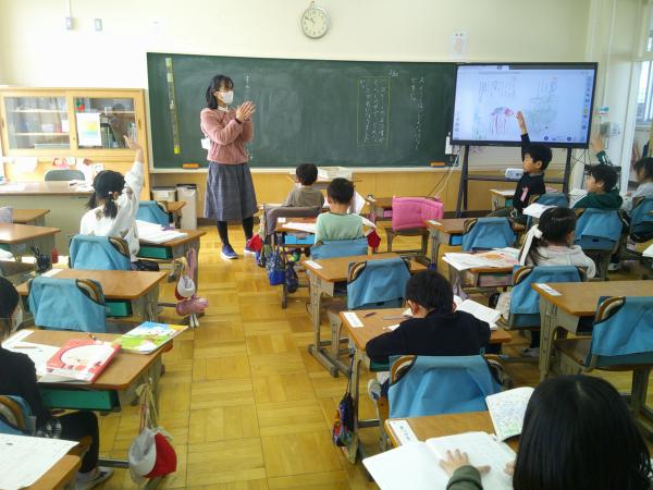 1年生の授業の様子です。1組も2組も国語のスイミーの学習でした。