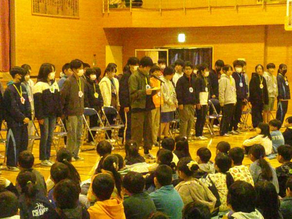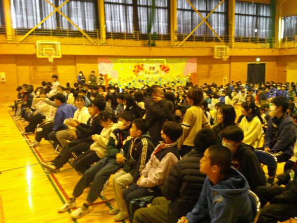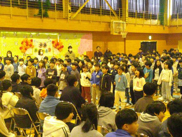 6年生の送る会の様子です。 6年生は1年生と一緒に手をつないで入場してきました。クイズやプレゼントの贈呈、歌などが披露され、楽しい雰囲気の中にも、感動的な場面もあった素晴らしい会となりました!! 1年生から5年生までが準備に関わり、6年生にために活動してきたことは大きな意味があります。これぞ、小絹小のこどもたちの活躍が光った取り組みだと感じました! いよいよ6年生は卒業まであと7日です!残りの期間も楽しい思い出をたくさん作ってくださいね!!(o^―^o)