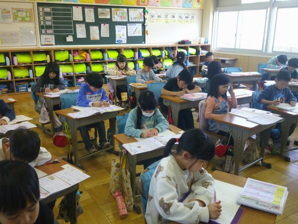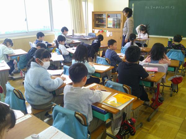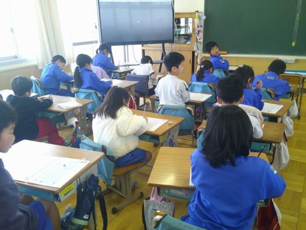 1年生と2年生の様子です!! 漢字練習を静かにやっているクラス、係活動でみんなと話し合いながら活動しているクラス、立体の箱を一生懸命作っているクラスなど、どのクラスも一生懸命活動していました。年度末を迎え、いよいよ学年としてのまとめの時期です。 4月には幼かったこどもたちも大きく成長して、頼もしく感じられます。1年間の成長を感じられる時間でした!!(o^―^o)