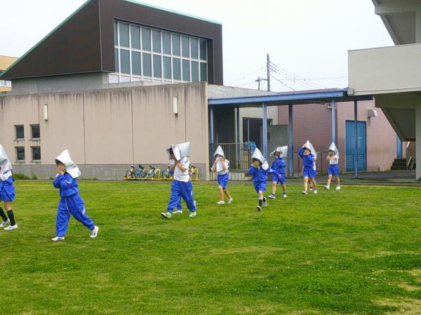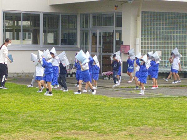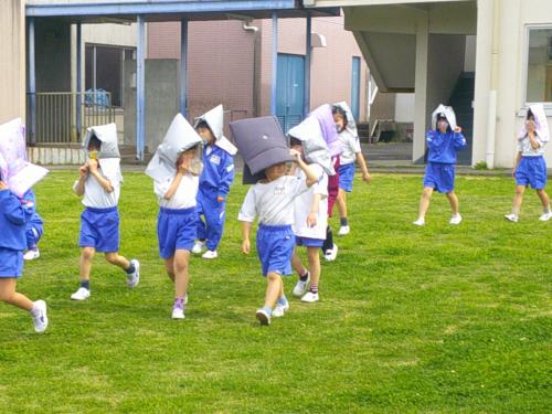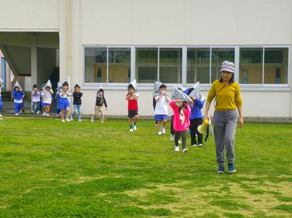 避難訓練の様子です。 子どもたちは実際に火災が起きたことを想定して、防災頭巾をかぶりながら避難をしました。 「おかしも」を守って、子どもたちは真剣に取り組むことできたので、とっても立派な態度でした。 訓練とはいえ、本当に火事や地震が起きたら、悲しい思いをすることは想像できます。そんな悲しい思いをすることがないように一生懸命取り組む姿が印象的でした。 100点満点の出来だった今回の避難訓練が、これからもこどもたちの心に残ることを期待しています。(⌒∇⌒)