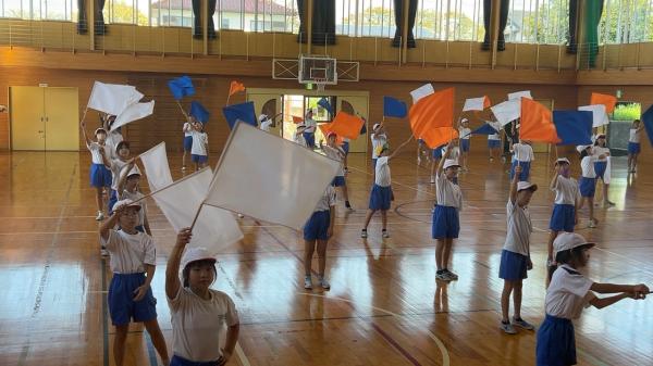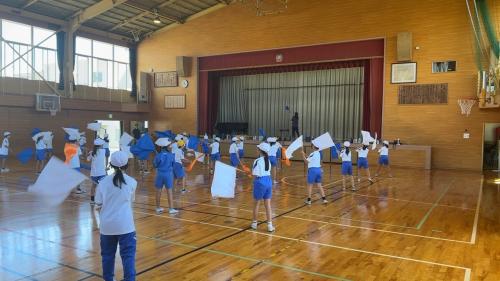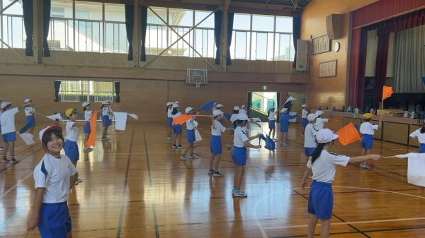 10月25日に小絹小学校では運動会が行われます!!(o^―^o) 子どもたちも少しずつ運動会モードになり、練習がスタートしました!! 5年生は、体育館でフラッグを使った表現運動の練習を行っていました。音楽に合わせて旗を振っている姿がとってもかっこいいです! 運動会本番には、さらにかっこいい姿が見られると思います!!ぜひ、期待してください!!!(o^―^o)
