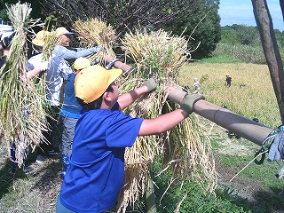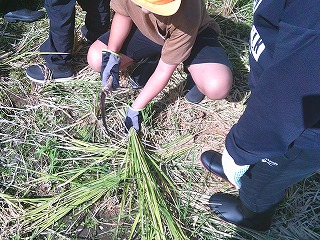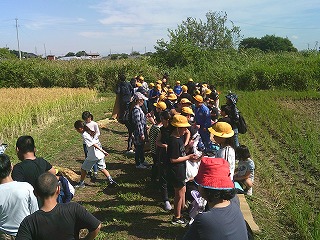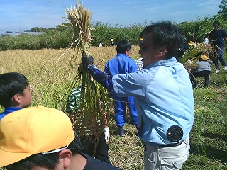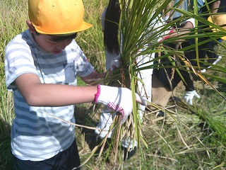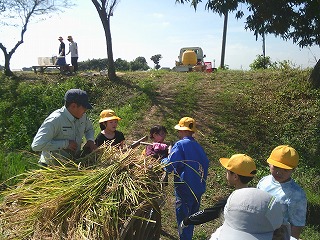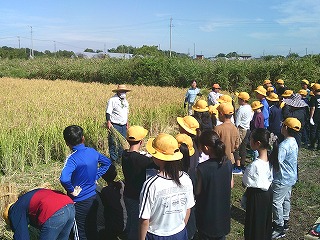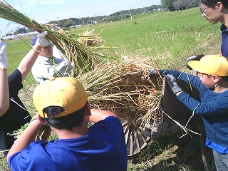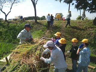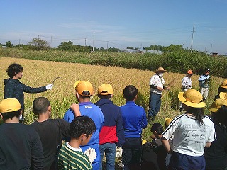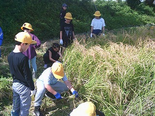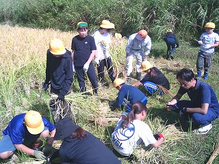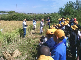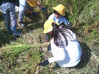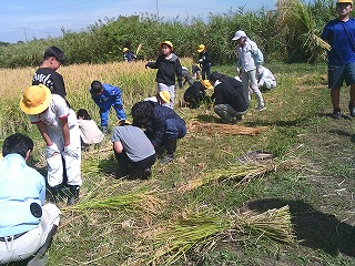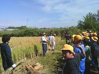 9月25日(木)に5年生は、稲刈り体験を行いました。 古瀬の会の方々の協力を得て、5月に植えた稲を刈りました。 5年生の社会科では、米作りの工程を苗作りから出荷まで学習しました。その中の工程の一つである稲刈りの体験は貴重なものです。 「大変だけど稲刈りは楽しい。」「刈るより束ねることが大変。」などの感想がありました。 11月には脱穀体験があり楽しみです。 古瀬の会の皆様、保護者ボランティアの皆様ご協力ありがとうございました。