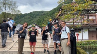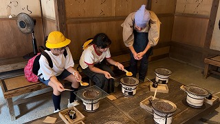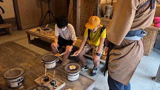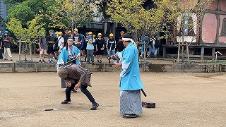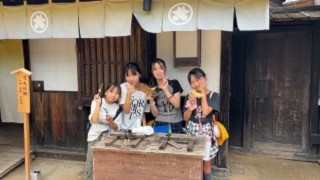 本日、2つ目の見学は日光江戸村です。 着物を着た人たちのいる古い町並みを歩くことで、江戸の雰囲気を味わうことができました。 おせんべいを焼く体験をしたり、お芝居を観たりと楽しいひと時を過ごしていました。