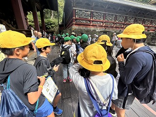 日光東照宮は、彫刻や彩色など建築装飾の素晴らしさが目を引きます。 行動班ごとの見学です。班ごとに歴史的な背景や魅力を見つけることができました。 東照宮見学の後は東町エリア散策です。