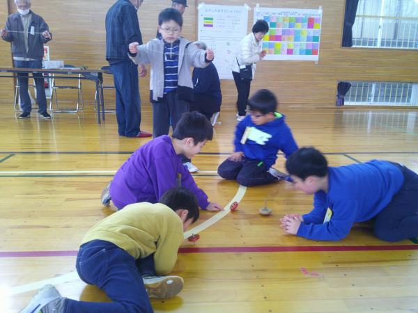 1年生の教えてもらおう!昔の遊び集会の様子です。