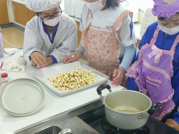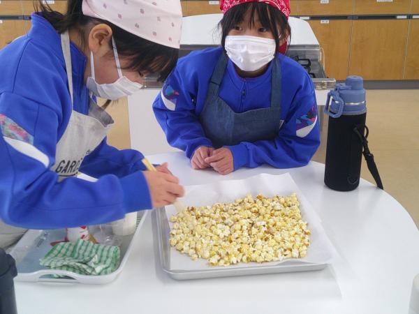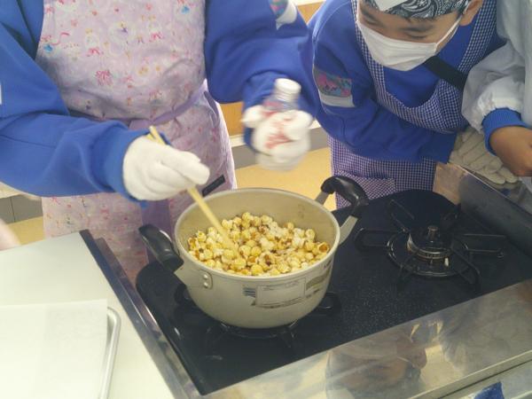 グランドで元気いっぱいにサッカーの授業を行っていました!声を掛け合ったり、作戦を考えたりなど、みんなで協力する姿がありました。また、2時間目には学校で栽培したトウモロコシをポップコーンにする授業でした。鍋に入れたトウモロコシのタネを火にかけて、数分待つと・・・・。ビックリするくらいのポップコーンのできあがり!!(^▽^)/ こどもたちはその変化にとってもビックリしていました!(^▽^)