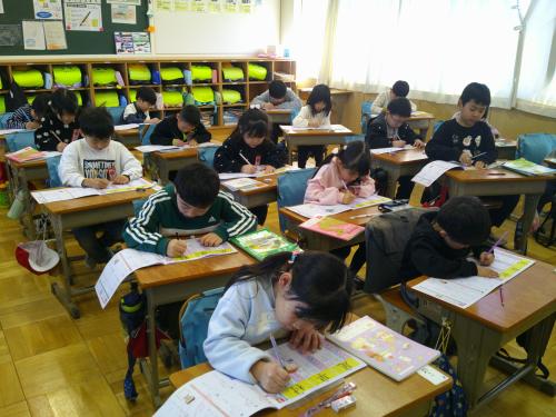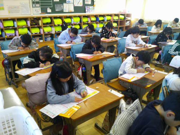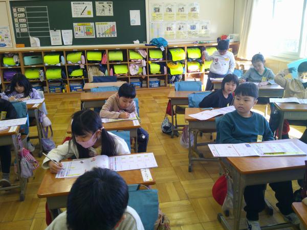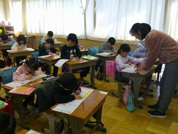1年生の国語の漢字の練習です!! 1年生はもうたくさんの漢字を学習しています。一画一画しっかり学習することにより、きれいな字が書けるようになります。 先生と一緒に書き順をしっかり学習することができました!!!午後の授業でも集中力を切らさないで頑張る1年生でした!