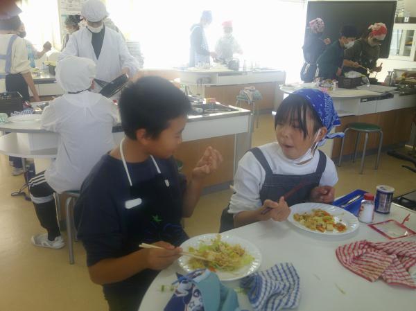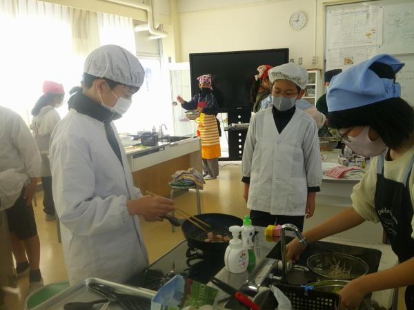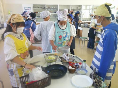6年生の調理実習の様子です。 「あつあげと野菜のチャンプルー」というとってもおいしい料理にチャレンジしました!! さすが,6年生です。材料の切り方やプライパンでの炒め方などはとっても上手でビックリしました!! グループで協力しながら取り組んでいる姿は,とっても頼もしいです。とってもおいしい料理が完成しました!!!(^▽^)