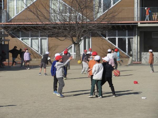 本日は気温が高くなり、外で遊ぶ姿がたくさん見られました。 鬼ごっこ、ドッジボール、鉄棒、一輪車、…。 うがい手洗いをしっかりして、かぜ予防に努めてほしいです。