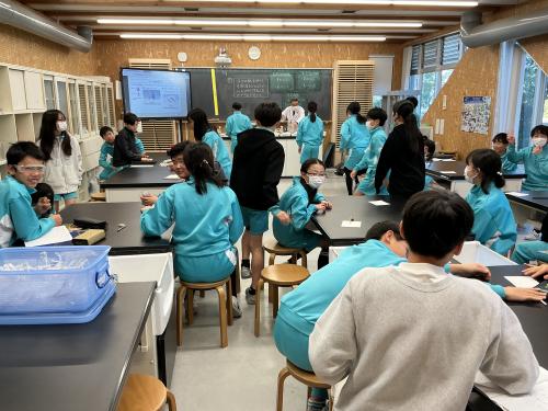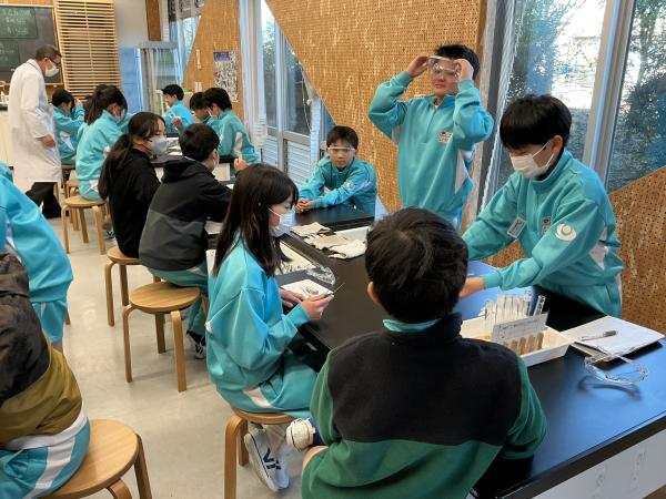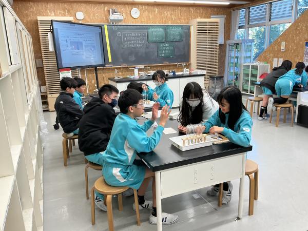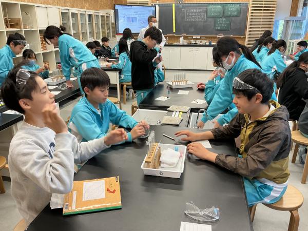 6年生の理科の授業で、リトマス紙の実験を行いました。赤か青かどちらか、話し合いながら確かめました。