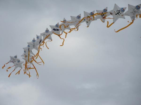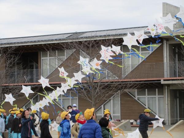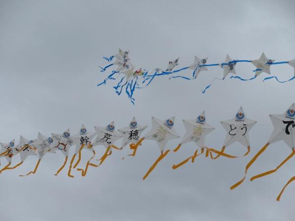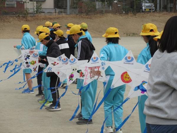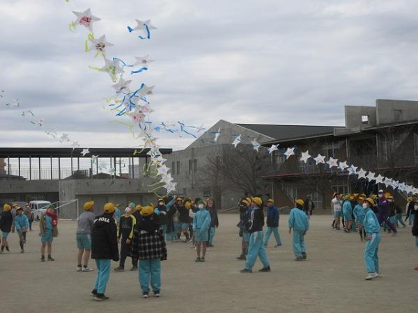 5年生は5校時に、日本の凧の会の方にお越しいただき、連凧あげを体験しました。みんなで一枚一枚丁寧につくった凧が見事大空に上りました。拍手喝采です。 貴重な体験をありがとうございました。