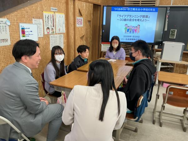 6年生の授業で、大勢のライフプランナーの先生による、ライフプランニング授業が行われました。 夢をかなえるためには何歳のときにどれくらいお金が必要なのか、どうしたら生活にゆとりをもって暮らせるのか、ライフプランナーの先生と話合いながら考えました。どんな車を持ちたいか、大人の月々のお小遣いをどれぐらいにするかなど、具体的に想像しながら話している姿は、皆生き生きとしていました。