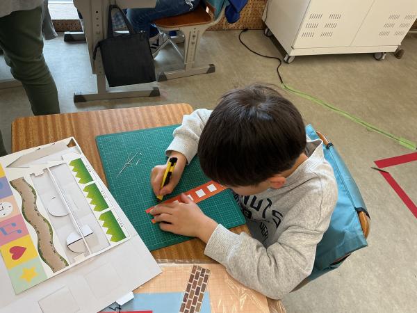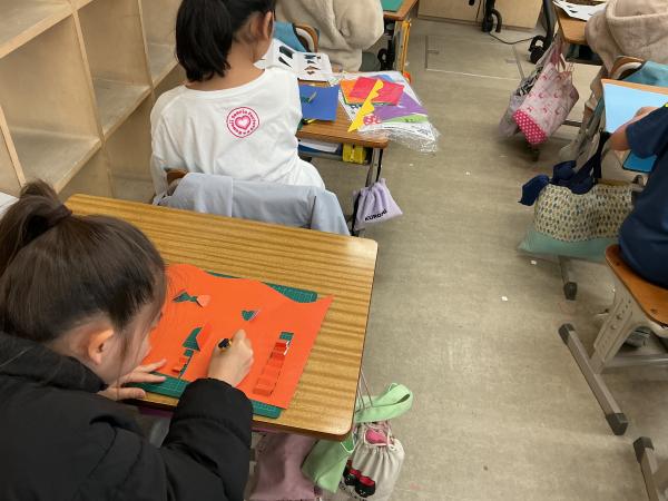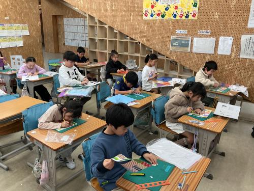 2年生の図工ではカッターナイフを使って「まどのあるたてもの」の工作の授業を行いました。カッターナイフの使い方に気をつけて自分の好きな形に工作用紙を切り抜いたり、切り込みを入れたりして、様々なたてものができました。いろいろな形を切り抜こうと、とても真剣に取り組んでいました。