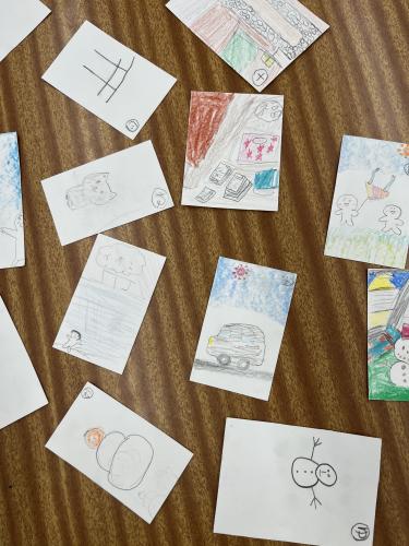 図工の一環でお正月や冬休みに関するカルタ作りをしました。 思い出を振り返りながら、友達と楽しく作成することができました。