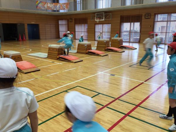 3年生は、跳び箱で開脚跳びや閉脚跳びの練習に取り組みました。 手のつき方や踏み切りの仕方に気を付けながら、意欲的に活動しました。 また、準備や片付けもみんなで協力し、すばやくていねいに行うことができました。