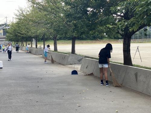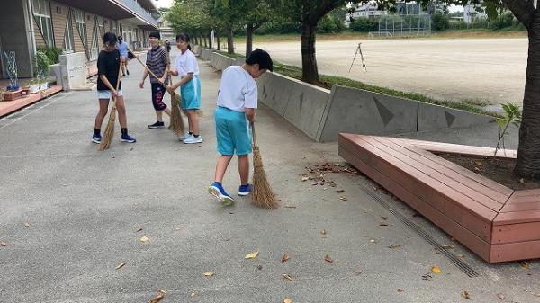 桜の葉が通路に落ちはじめました。 それに気が付いた美化委員会の児童が、掃き掃除を、毎朝行ってくれています。 学校がきれいになり、気持ちもすがすがしくなります。 ありがとうございます。