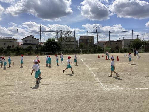 一年生の体育では、校庭で体ほぐしの運動遊びや走る運動遊びを行っています。 子供たちが率先して、コーンやミニハードルの準備をしたり、取り組んでみたい遊びにチャレンジしたりする姿が見られます。 体を動かすことを楽しみ、体力向上に繋げていきたいと思います。