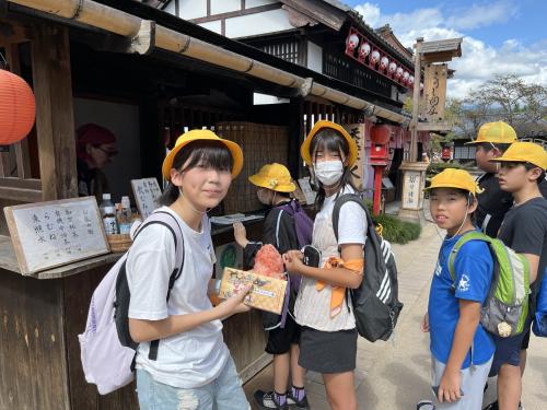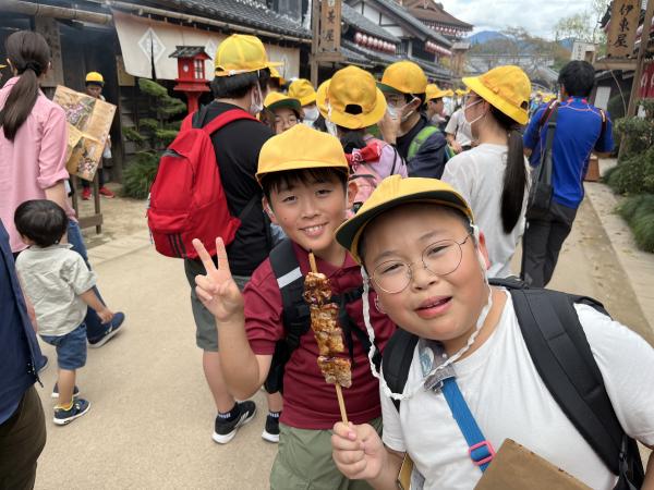 班別行動では、事前に立てた計画に従って、思い思いの体験をしています。お昼も食べます。