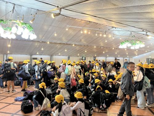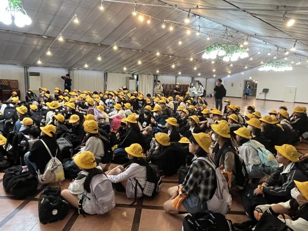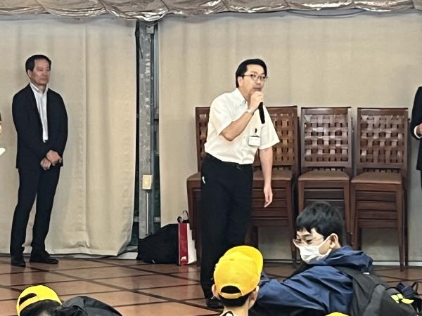 見学コースの変更はありましたが、無事、予定した時刻に到着することができました。 入館式を行います。17:20