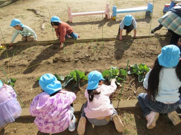 と、野菜が成長する様子に夢中になっているすみれ組さん🤭春に収穫するのが楽しみです✨✨