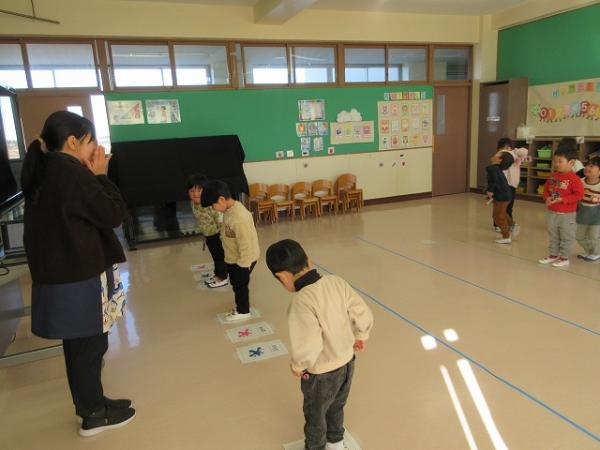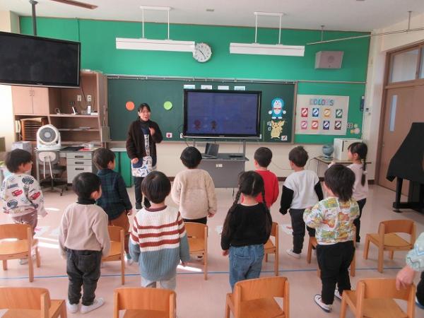新年あけましておめでとうございます!!本年もどうぞよろしくお願いいたします。冬休みが明けて、元気な声であいさつをしながら登園してくれた子どもたち♬冬休みの思い出をたくさんお話ししてくれました~(*^▽^*)集会では、園長先生のお話を聞いたり、思い出を発表したり、大型絵本の読み聞かせ📚や「くまのこ」を歌ったりしました~🐻🎶
