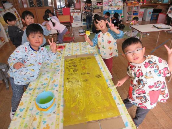 サイズが、自分たちよりも大きくなったので「すごーい!!」「手が届かない😆」と、周りで見ていた子や他のクラスの友達も大盛り上がり🎶