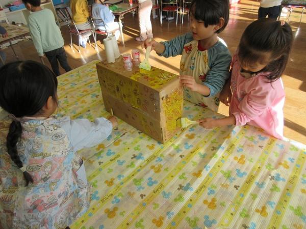 室内では、空き箱を使って動物作りが流行っていて、図鑑を観ながら、ぞうやシマウマ、オオカミ等を作っていました🐘🦓🐺