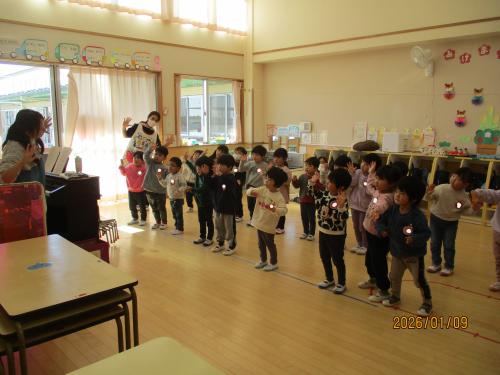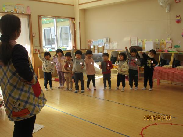 1月9日 避難訓練(火災)&発表会に向けて(年少組)