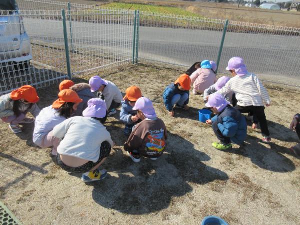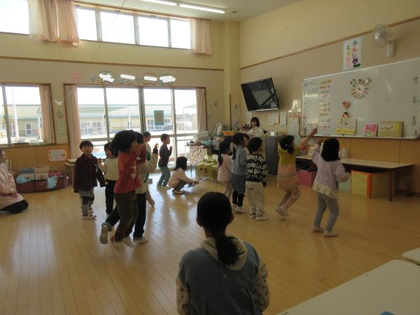 今日は寒かったですが、みんなで体操で「ラーメン体操」と「動物体操」を踊り、体が温まりました💓最近は、発表会の練習を頑張ったり、発表会の日に飾る壁面製作をしたりしています✨また、チューリップの球根植えをし、新たに水かけ当番が始まりました🌷戸外遊びの際に「まだ芽が出ないね~👀」と観察する姿が見られています😊チューリップの成長を、今後も楽しく観察していきたいと思います🎵
