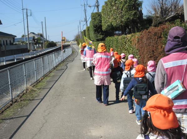 年少組と年中組は、異年齢交流で散歩に行きました😊💕今日はとてもいい天気で散歩日和🌞年中さんが年少さんの様子を見ながら楽しく歩くことができました!