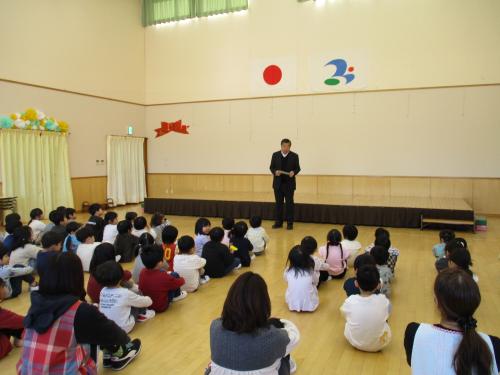 園長先生から、「お家で元気に、楽しく過ごして…」などのお話がありました。