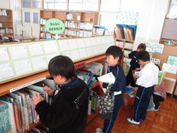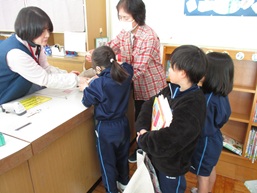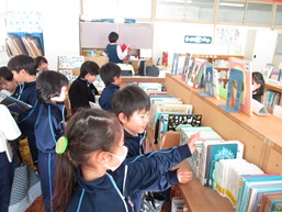 今日は、冬休み前の図書の貸し出しがありました。一人5冊を選びましたが、お目当ての本をすぐに見つける子もいれば、どれにしようかなと悩んでいる子もいました。絵本バッグはとても重そうでしたが、みんな笑顔で持ち帰っていました。昼休みは、ダンス係のおすすめ動画を観ながら、一緒に踊って楽しみました。