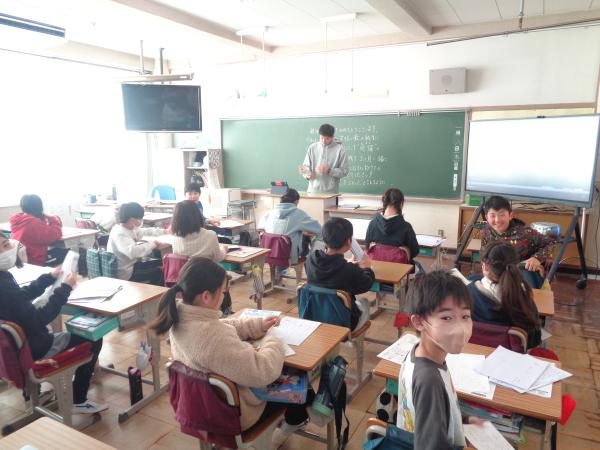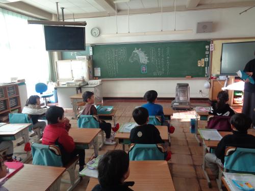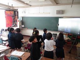 音楽は、クリスマスソングを歌ったり、合奏したりして楽しみました。国語は、おとうとねずみチロの音読発表会をしました。頑張るチロ、かなしんでいるチロ、喜んでいるチロ、いろいろなチロの気持ちを想像して読んでいました。休み時間は、折り紙遊びをしている子が多かったです。今日は、最後の登校日なので、気持ちよく新年を迎えるために、机とロッカーの中の整頓をしました。