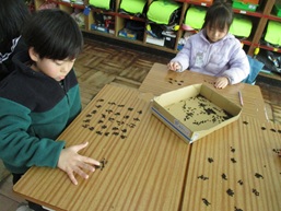 今日の学習は、クリスマスゲームで盛り上がりました。輪投げやマグネットつりをして、クリスマスに関する英単語に親しみました。