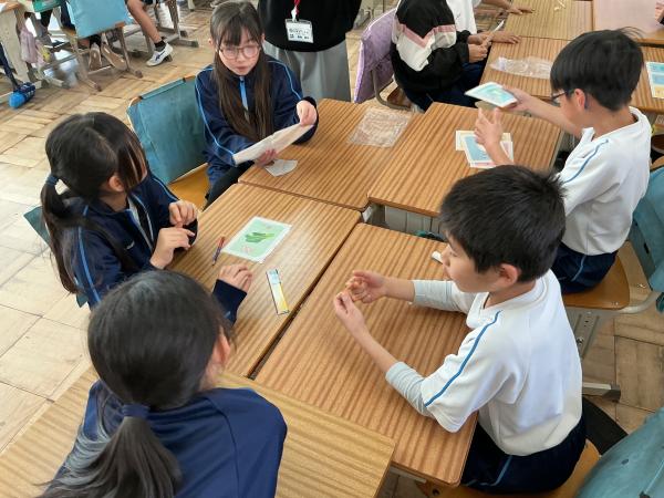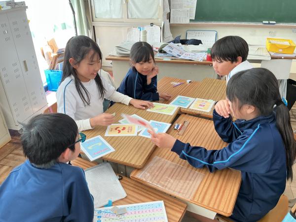 6年生を送る会が開かれ、縦割り班でゲームを楽しんだり、学年ごとの発表で6年生に感謝を伝えたりしました。在校生から心のこもった色紙やキーホルダーをもらった6年生は、とても喜んでいました。