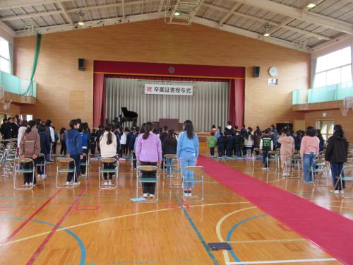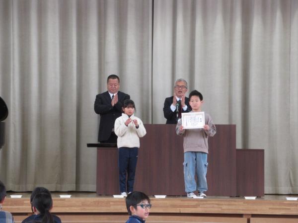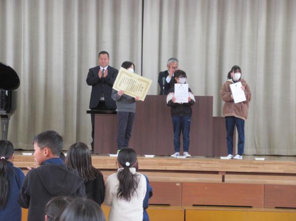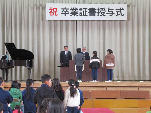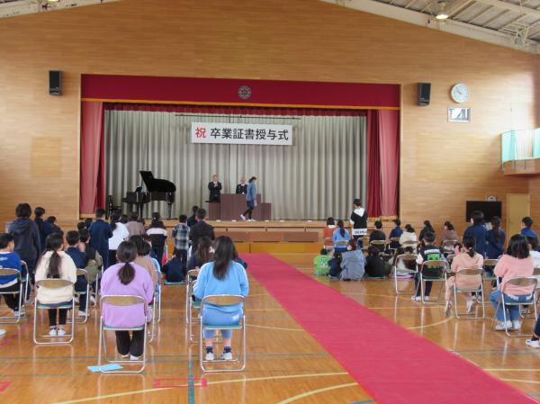 来週の卒業式に向けて、予行練習を行いました。入退場や呼びかけ、歌など、本番と同じ流れで確認しながら練習しました。子供たちは少し緊張した様子でしたが、真剣な表情で取り組み、卒業に向けての気持ちを高めていました。 予行練習の後には、表彰式も行いました。名前を呼ばれた児童は、堂々と賞状を受け取っていました。