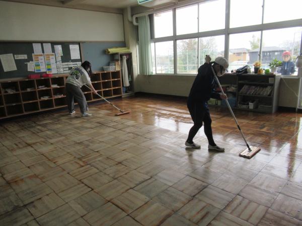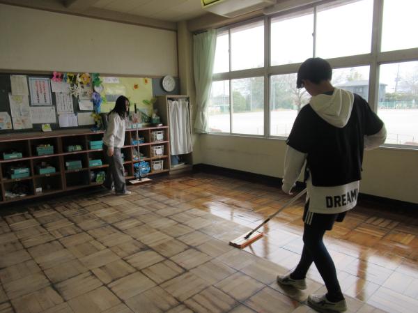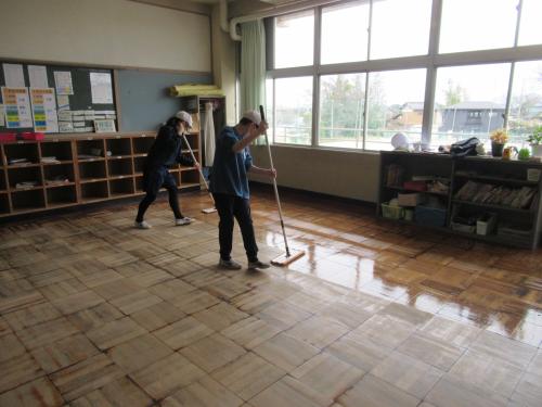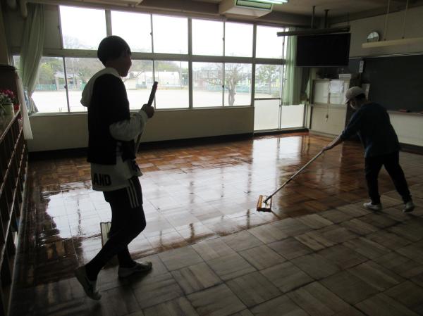 大掃除をしました。普段はなかなか手に届かない場所を、みんなで協力して掃除をしました。その後、6年生がワックスがけを行いました。卒業を前に、学校への感謝の気持ちを込めて取り組む姿がとても立派でした。