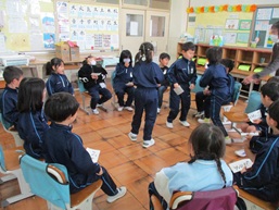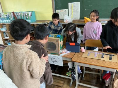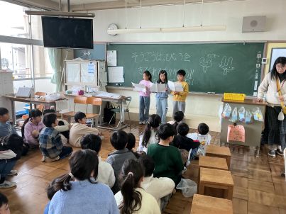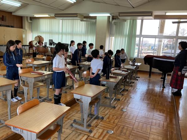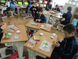 今日の給食は、赤飯やケーキなど、6年生の卒業をお祝いしたこんだてです。すまし汁には、「祝」の文字が入ったなるとや、桜の形のかまぼこが入っています。