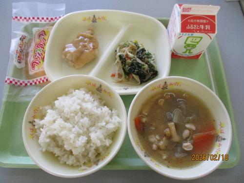 今日の給食は、中華めんの献立で、スープは「とんこつスープ」です。「とんこつ」は漢字で豚に骨と書きます。字のとおり、豚の骨を煮出してとるだしのことです。ラーメンのスープなどによく使われます。今日は寒い1日だったので、温かいスープで体も温まりました。