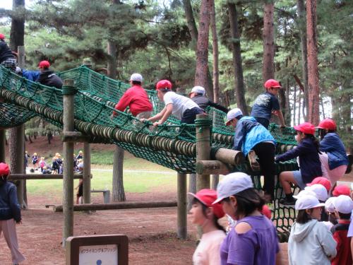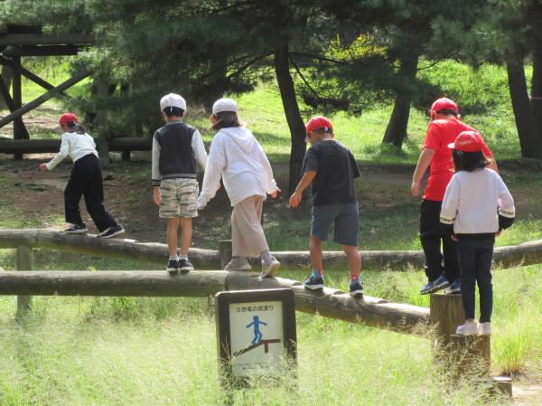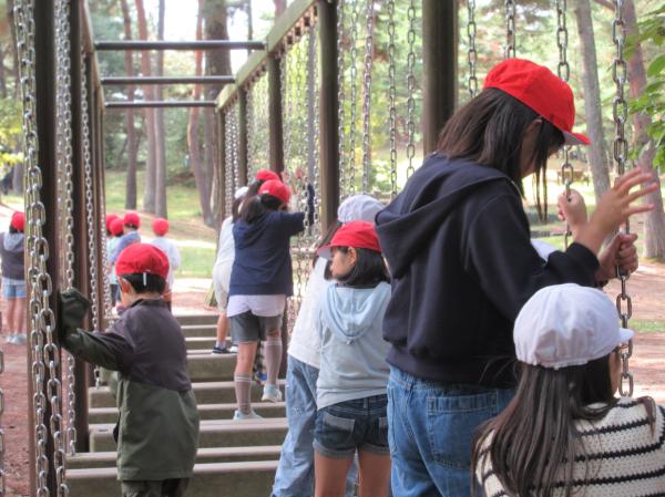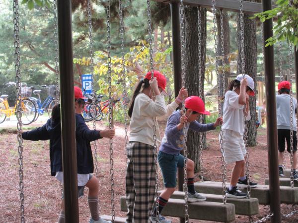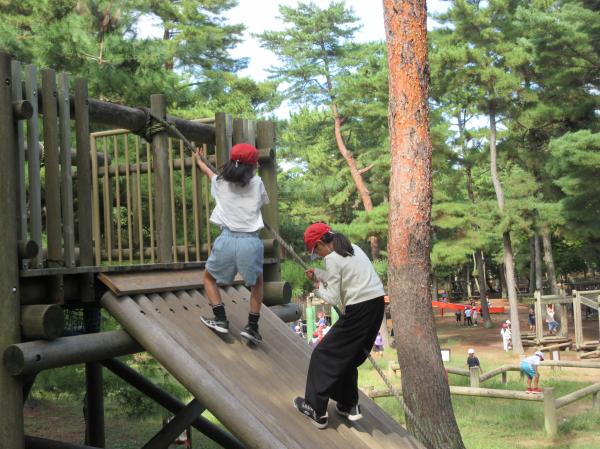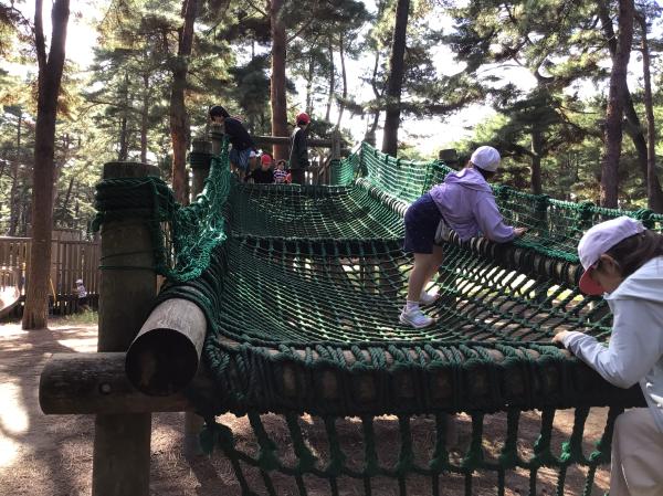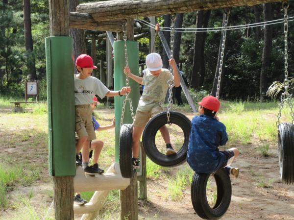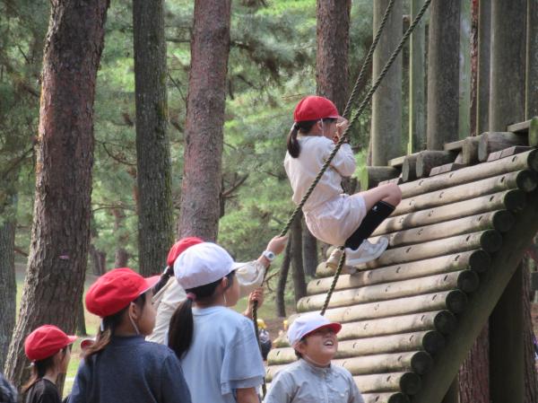 午後の活動、アスレチックで思い切り楽しんでいます。