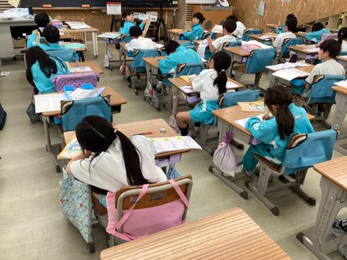 明日は1年生初めての月例漢字力テストがあります。 文字の形をよく見て、1文字1文字丁寧に漢字練習しています。 明日のテストに練習の成果が発揮できるよう願っております。