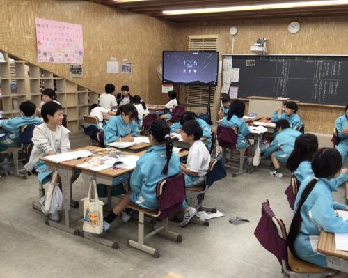 4年生の国語の授業の様子です。 「くらしの中の和と洋」の単元で、グループで協力して身の回りの和と洋を探し、話し合いながら学ぶことができました。