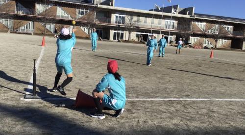 6年2、5組の体育では、ティーボールを行なっています。 バットを振ってボールを打つ活動は慣れない動きでなかなか難しい運動になりますが、児童たちは上手に打つ方法を考え、様々な工夫を凝らして取り組んでいます。