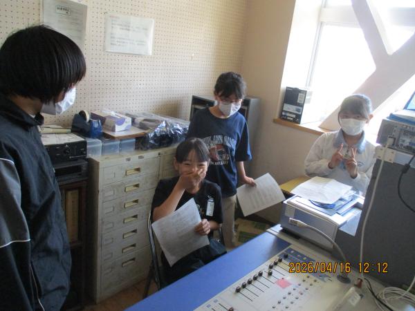放送室では、お昼の放送のために、放送委員会と給食委員会の担当の人が準備をしていました。