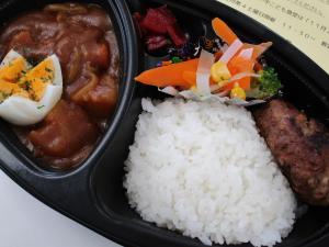 今回は、「ハンバーグ・トマトカレー・ブロッコリーサラダ・福神漬」というラインナップ。