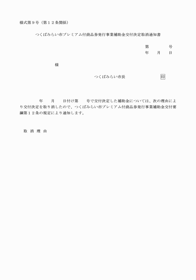 ○つくばみらい市プレミアム付商品券発行事業補助金交付要綱